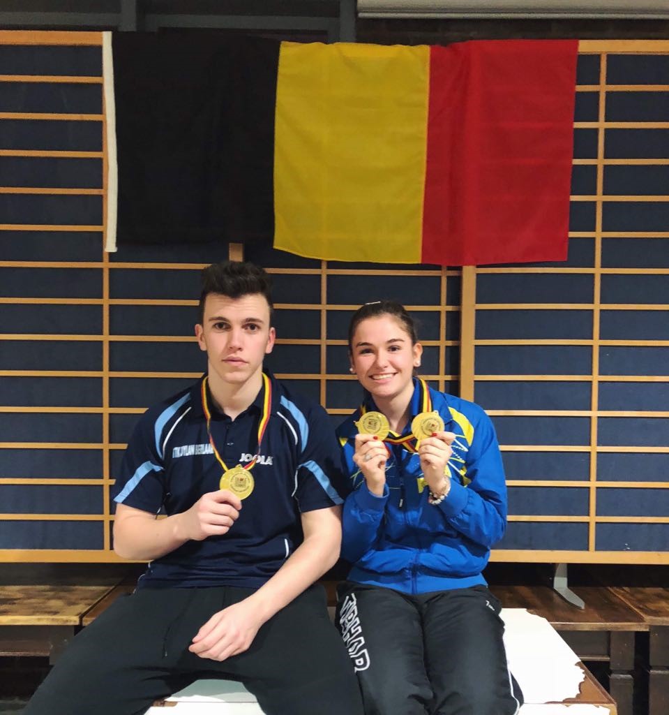 En met één keer goud had ze blijkbaar niet genoeg. Samen met Jules D’hollander werd ze ook nog eens Belgisch kampioen dubbel gemengd -21. De twee speelden voor het eerst samen dubbel en gingen meteen voor goud. In de finale versloegen ze knap de winnaar van vorig jaar: het duo Arthur Bilas/Lauranne Hackemack. Voor Jules, die sinds dit seizoen in de eerste ploeg van Berlaar speelt, is dit de eerste Belgische titel.