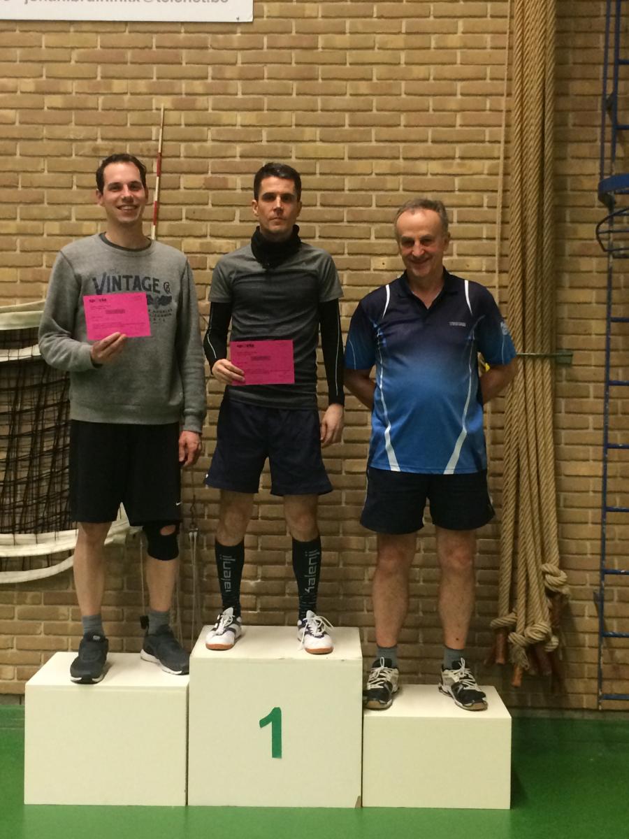 Robin won zijn kwartfinale en halve finale telkens met 3-0 om voor de derde keer die dag Kim Willems tegen te komen in de finale. Overigens al de vierde finale tussen deze heren. De twee eerdere nederlagen tegen Robin die dag zaten duidelijk nog in het hoofd van Kim. Toen Robin bij een 1-1 setstand ook nog eens een 9-3 achterstand nog omboog in een 11-9 winst in set drie werd de laatste set enkel nog een formaliteit. Kim gaf alle moed op.