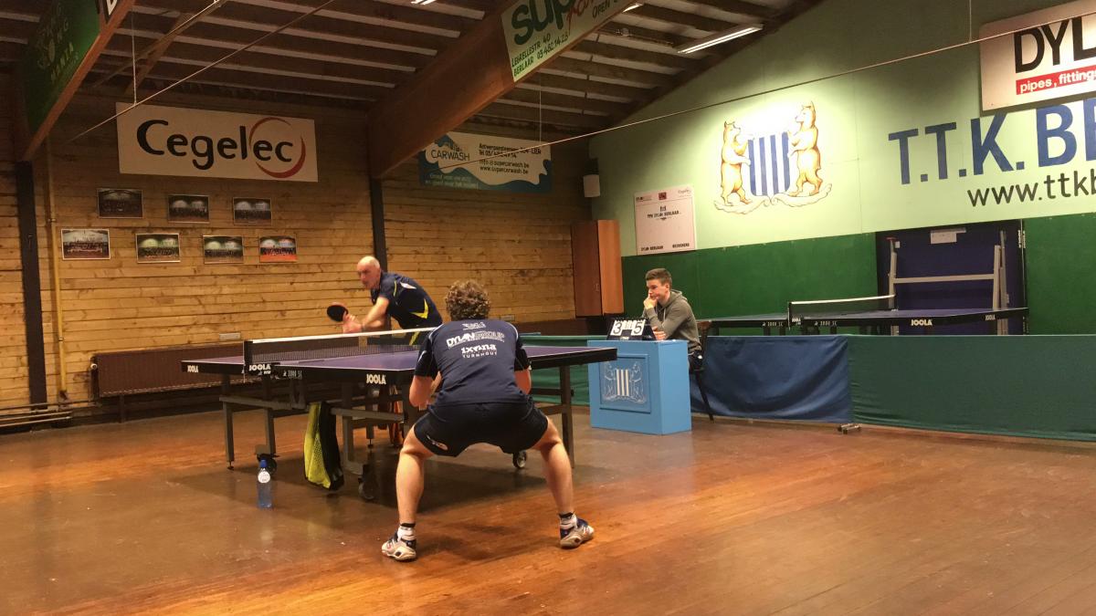 Tegenstander in de laatste thuiswedstrijd van het seizoen was Donald Heuseux. Het werd 12-4 voor de thuisploeg. De sterkhouders waren Lauren Enghien en Vincent Van Hoven, die elk vier wedstrijden wonnen. Jules D’hollander en Jochem De Hoop deden de rest met twee winstwedstrijden.