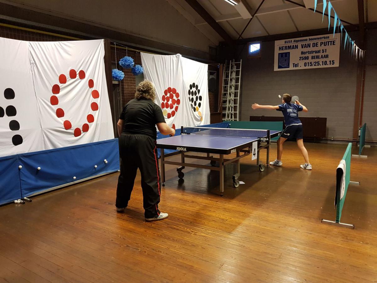 De spelers werden in twee groepen verdeeld en elke speler moest twee wedstrijden spelen. Berlaar had geprobeerd om ongeveer een gelijkwaardig team op te stellen en dat was Werner blijkbaar heel goed gelukt. Na twaalf duels stond het immers 6-6 gelijk. In de hogere groep werd het 2-4, in de lagere groep 4-2. Om een winnaar te kunnen aanduiden, moesten sets geteld worden. Die telling draaide uit in het voordeel van Berlaar: 25-22.