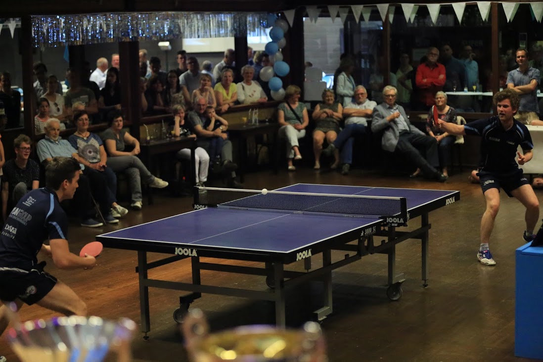 Ondertussen speelden op een groot scherm doorlopend filmpjes van onze spelende leden en andere hoogtepunten en van de spectaculaire trickshots die door onze jeugd waren gemaakt voor deze viering.