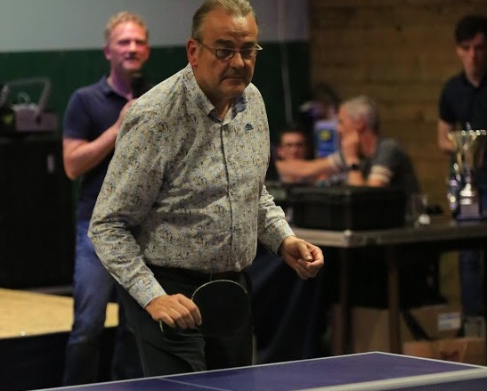 Toen presentator Luc Enghien daarna voorzichtig polste of hij ook een balletje wilde kloppen tegen iemand van onze A-ploeg, volgde een moedig 'ja'. En dat ging niet eens zo slecht ;-).