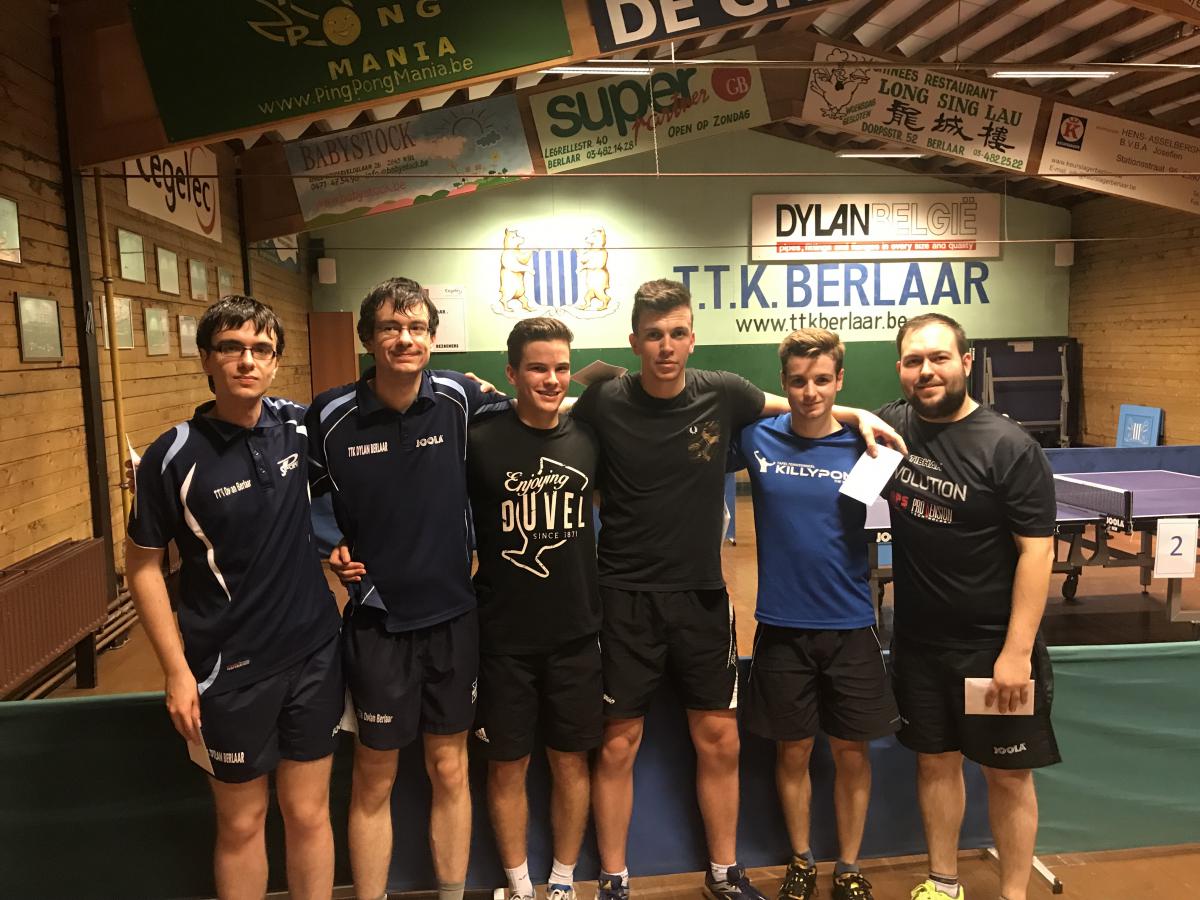 In poule B vond de verrassing van de avond plaats. Bert Feremans en Leo Van Der Veken van Putte waren de tweede laagste ploeg ingeschreven, maar wonnen deze poule na zes overwinningen. Ramil Kayssarov - Davy De Groof en Jarno Heremans - Jasper Verhaegen wonnen evenveel wedstrijden maar eindigden respectievelijk tweede en derde. Andreas Ceulemans en Thomas Ceulemans (inderdaad, 2 broers) kwamen onderling goed overeen en rondden de poule af op een verdiende vierde plaats. Zij lasten op donderdag nog een extra trainingssessie in en dit heeft geloond. Dimitri Denckens en Ben Denckens, 2 broers van Orka wonnen drie wedstrijden en speelden verder in de verliezerstabel. Yordi Torfs en Bodhi Netten wonnen twee wedstrijden, twee, zij waren toevallig ook het tweede hoogste ingeschreven duo. Johan Dieltjens en Karel Thijs speelden vroeger samen in eerste provinciale in Berlaar, en vonden elkaar na meer dan een decennia terug. Zij werden als D4 ingeschaald en vonden hoe later op de avond, beter hun niveau terug. Zij konden in de poule winnen tegen Bram Sterckx en Lisa Bellens van Geelse. Deze laatsten konden geen match winnen, maar spaarden zich voor de verliezerstabel.