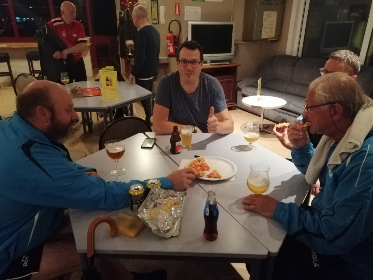 Louis en Loes konden met nog vier matchen te gaan nu al de drie punten pakken. Louis wist wel dat de match tegen de noppen van Walter lastig zou worden voor hem vermits ook Louis met noppen speelt en ze beide elkaar's sterke kwaliteiten neutraliseerden. Het werd een spannende belle die uiteindelijk met 11-8 gewonnen werd door Walter. Loes zou in zijn match, na al een ganse avond pech in het spel, nog een opdoffer te verwerken krijgen. Loes speelde goed tegen Filip. Na twee eerdere sets die Loes alweer met het kleinste verschil verloor (13-15 en 9-11) viel Loes ook nog eens geblesseerd uit in set 4 bij een 1-2 achterstand in sets. De vierde set was spannend en bij een 6-5 voor Filip kreeg Loes felle pijn aan z'n rechterbeen en moest helaas opgeven.