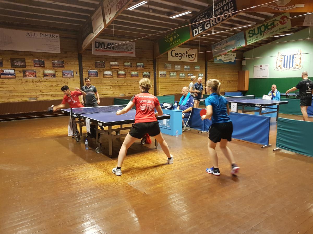 Het maximum inschrijvingen van 24 dubbels was al in september bereikt. Het dubbeltornooi wordt met voorgift gespeeld, met twee gewonnen sets tot 21 punten. Er moest jammer genoeg een dubbel de dag voordien afhaken door ziekte, maar dat mocht de pret niet bederven. Het deelnemersveld kwam uit 15 verschillende clubs (2 deelnemers hadden geen club), maar allemaal hadden ze twee dingen gemeen. Deze duo’s gingen voor de eeuwige roem en natuurlijk ook voor de sfeer en gezelligheid! Deze twee waarden droeg onze vorige voorzitter en goede vriend Karel Sappenberghs hoog in het vaandel.