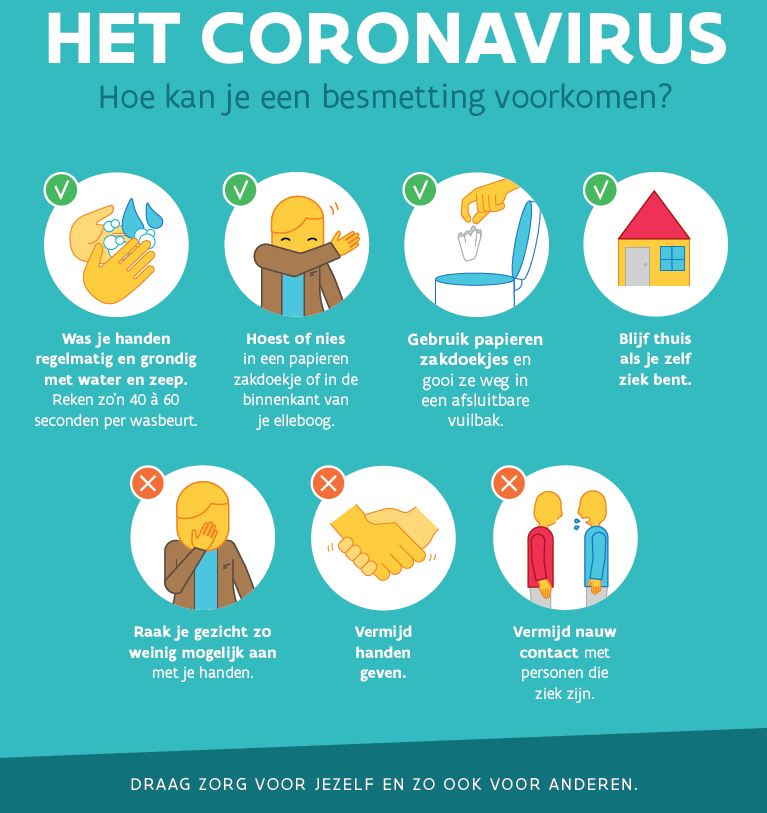 De aanbevelingen in verband met het coronavirus gelden ook in de sportclub. We zetten ze hier nog eens even op een rijtje, op basis van de website van Sport Vlaanderen.