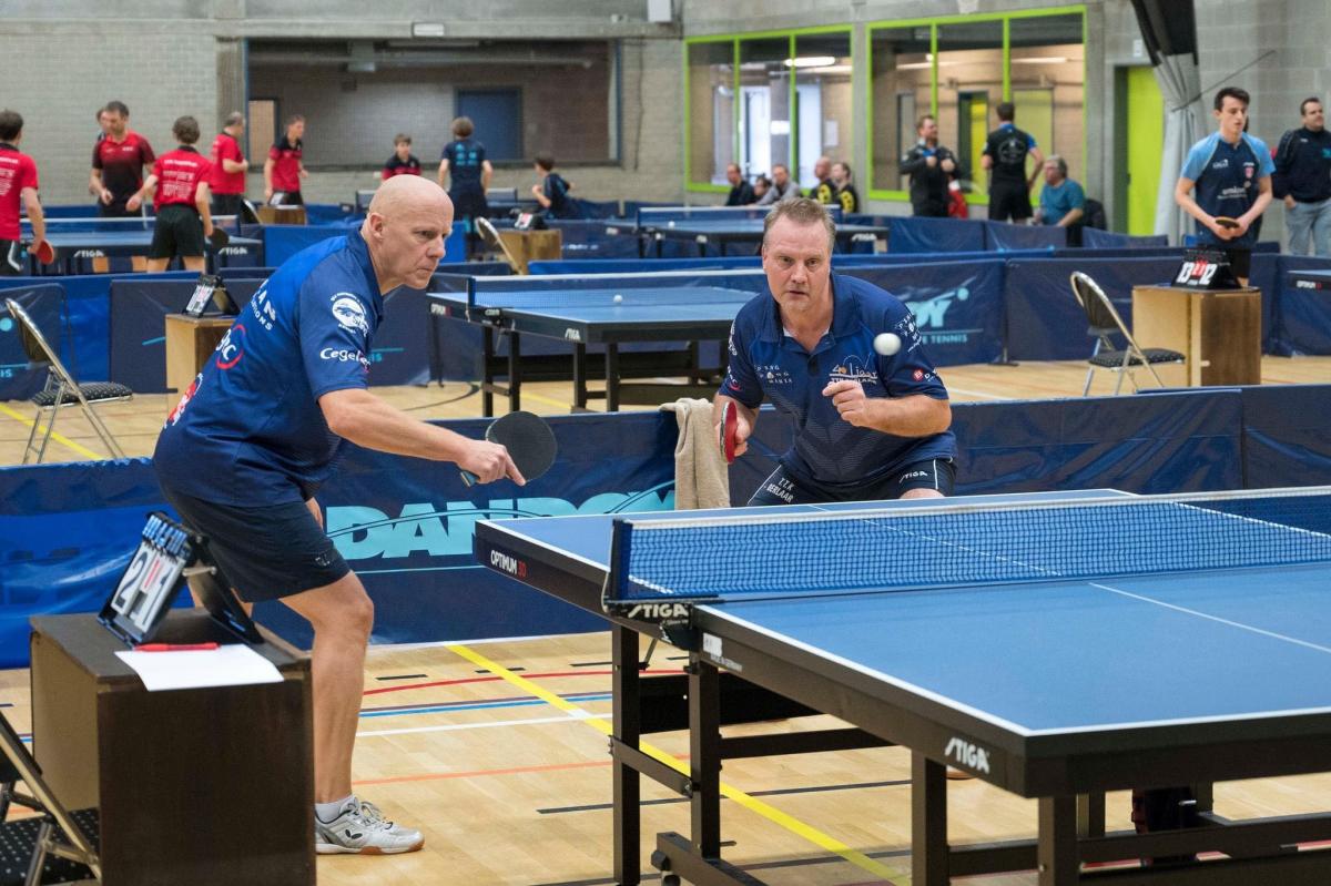 Allen naar Merksem waar die finale tegen de Roemeense jongens van Sint-Lenaerts door zou gaan. In een bloedhete zaal werd de strijd gestreden en met 2 – 3 gewonnen door Balder. Koen en Frans wonnen beiden hun eerste match met 1 – 3 maar verloren verwonderlijk het dubbelspel met 0 – 3. Dan maar eerst aan Frans om het laken naar onze ploeg te trekken, en hij deed dat met 2 - 3 in een beklijvende belle. Gelukkig, want in zijn laatste match moest Koen met 3 – 1 de duimen leggen. Of dat te wijten was aan de tropische omstandigheden in de zaal laten we in het midden, de strijdlust was er alleszins.