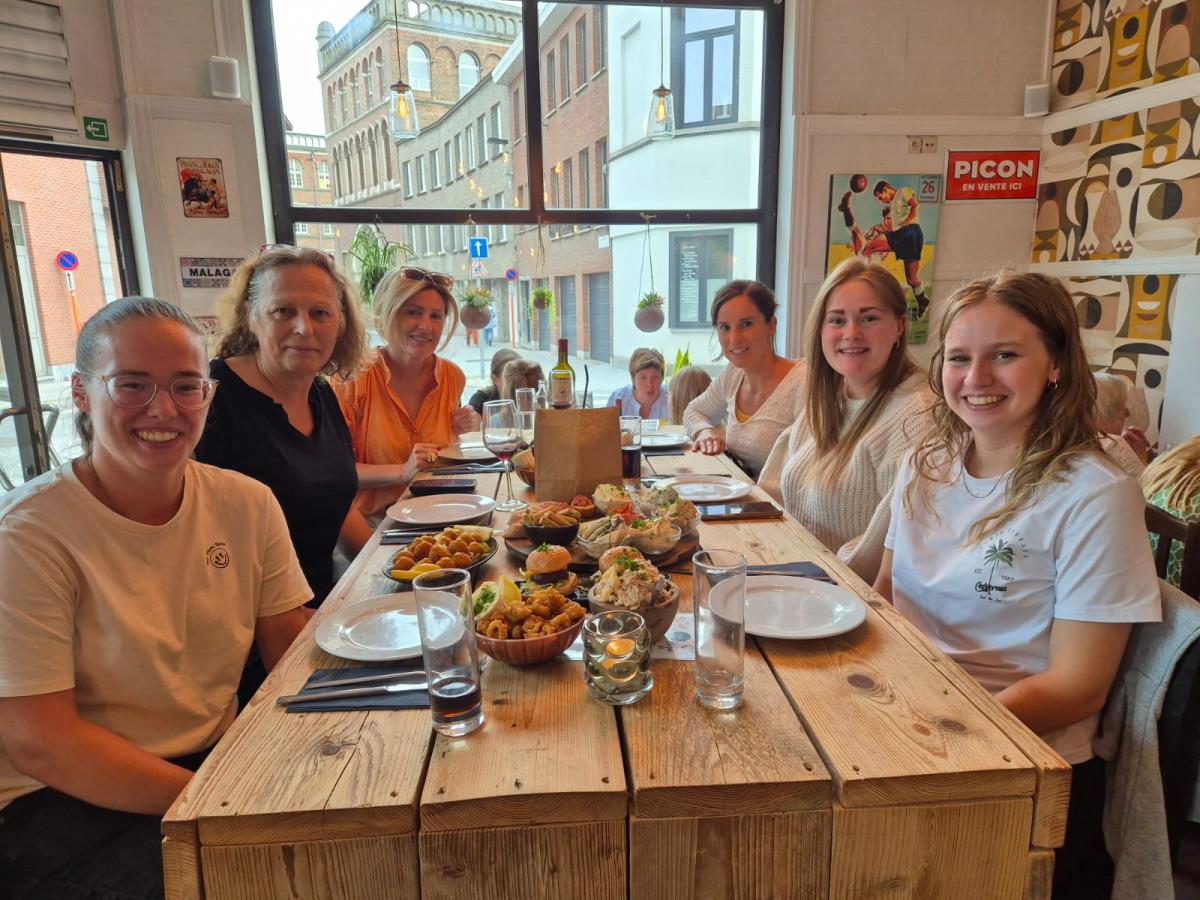 Afgelopen weekend kwamen de speelsters een eerste keer samen voor een uitgebreide training in het clublokaal. Daarna was er een etentje. Met de ploegspirit zit het dus al goed...