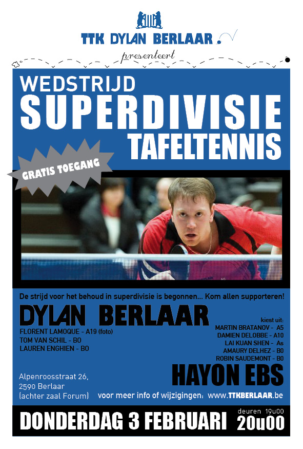 Thuismatch: Dylan Berlaar - Hayon EBS (do 3 februari 20u)