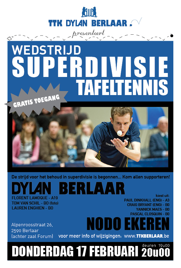 Thuismatch: Dylan Berlaar - Nodo Ekeren (do 17 februari 20u)