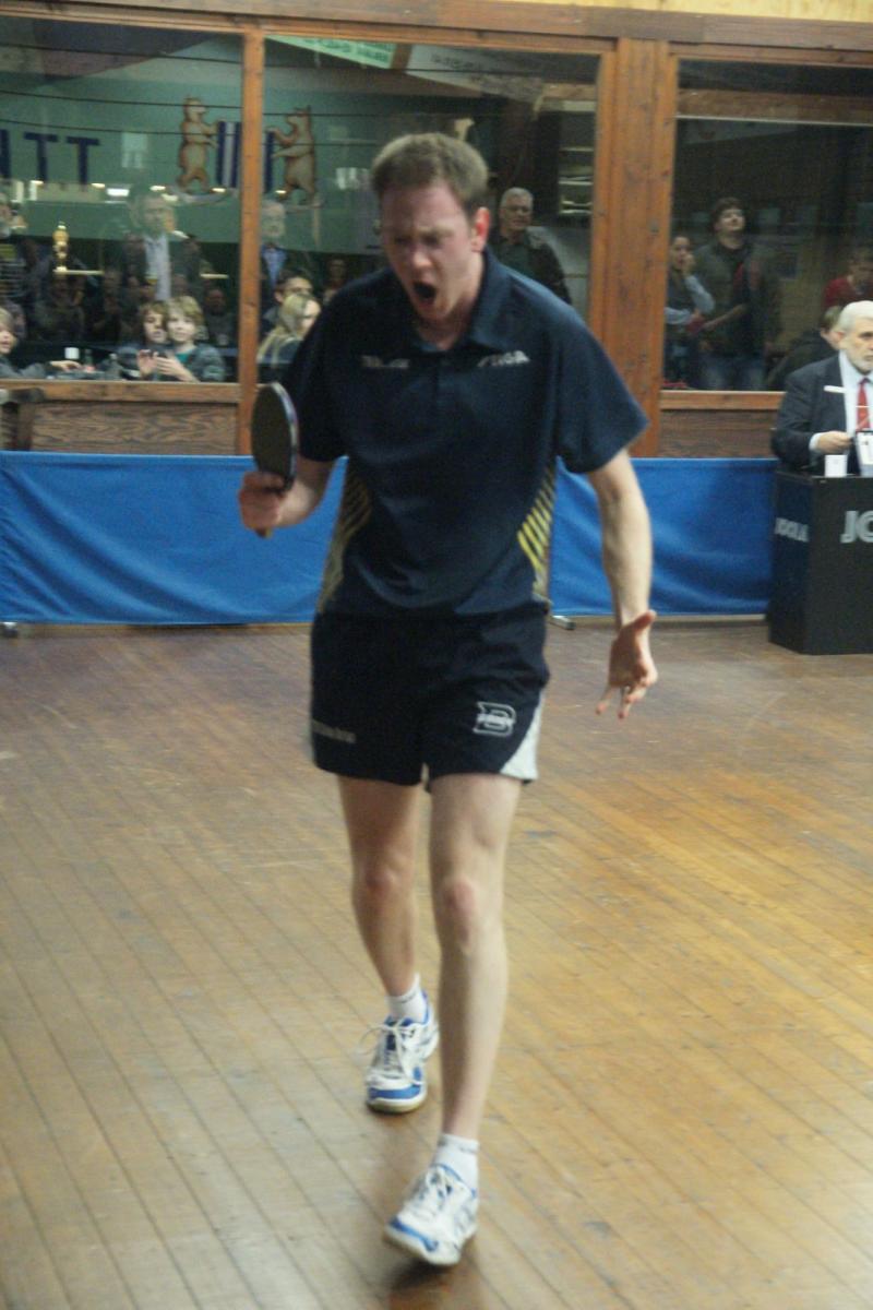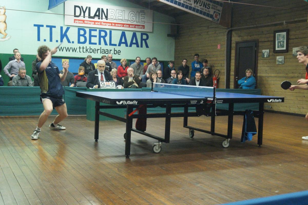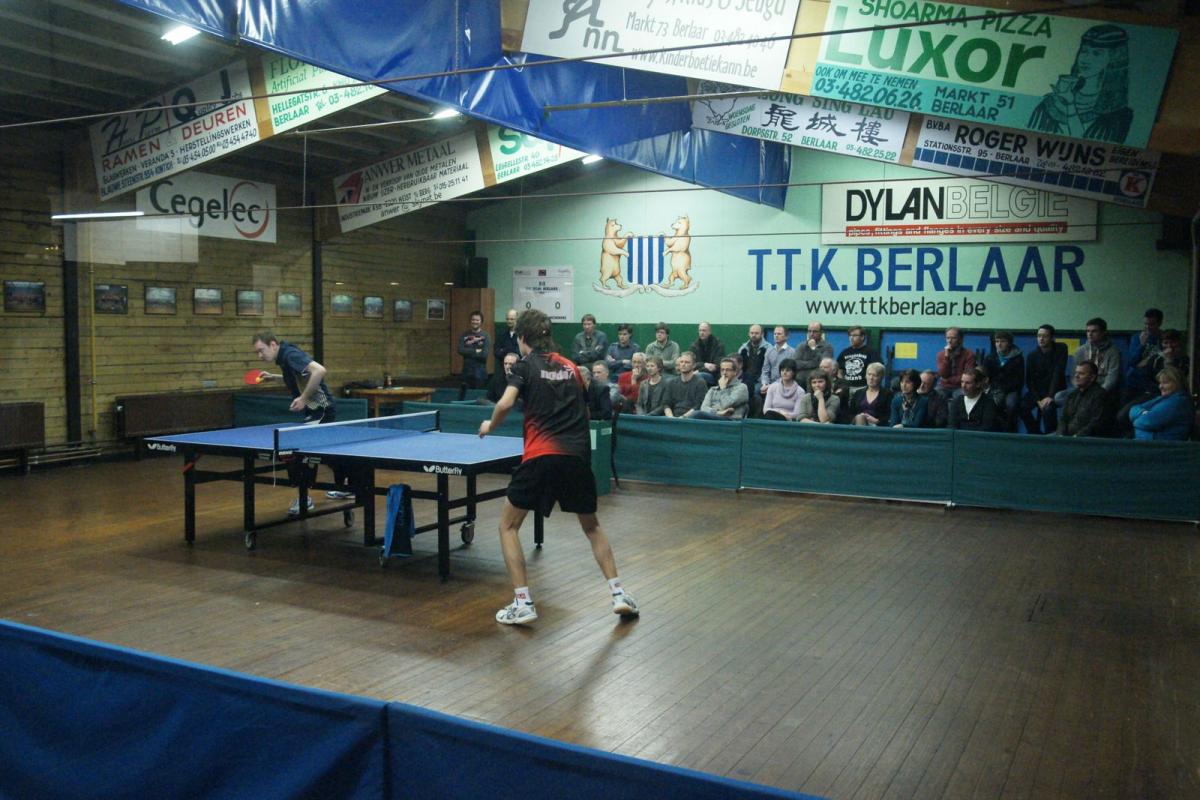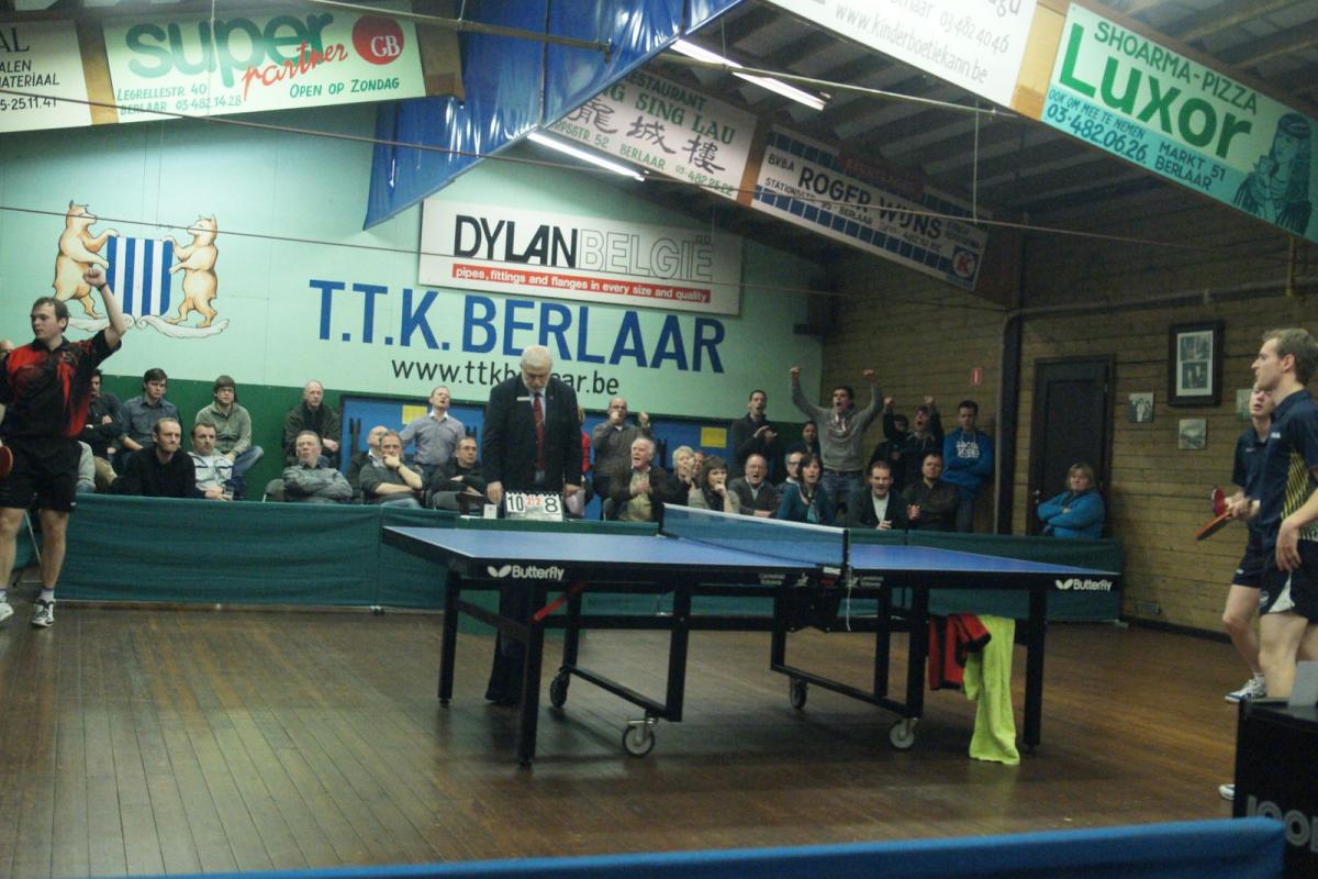 Lauren Enghien moest dan voor het beslissende vierde punt zorgen tegen Yannick Maes, die Berlaar dit seizoen al meermaals met lege handen achterliet. Maar vandaag liet Lauren hem geen kans (VIDEO). De Berlaarse jeugdspeler speelt al een tijdje op een wolk en zette zijn topprestaties van de laatste weken door. Met verfijnd, agressief en spectaculair aanvalsspel tikte hij Maes telkens uit. Na een droge 3-0 waren de zege en een oerkreet richting publiek een feit. Iedereen had op een zege gehoopt, maar niemand had er op voorhand op durven rekenen. Nadien deed Drinkhall tegen Van Schil nog wat van hem verwacht werd: zonder setverlies winnen (VIDEO), zodat de stand nog 4-3 werd.