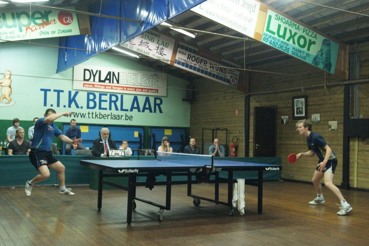 Na het 4-3 verlies in de heenmatch moest Berlaar een achterstand ophalen. Al bij de start bleek dat een moeilijke zaak. De cruciale match van Lamoque tegen Sau (A18) draaide uit in het voordeel van de uitspeler. Florent toonde bij momenten nog flitsen van grote klasse, maar de regelmaat was wat uit zijn spel. Tom Van Schil kon daarna niet verrassen tegen Zhang (A11), zodat het 0-2 werd. Lauren Enghien won daarna na een thriller tegen Rybakas, die veel meer weerwerk bood dan een week eerder. Het dubbelspel met voor Berlaar Lamoque-Enghien werd makkelijk door de twe A-spelers van Mortsel gewonnen.