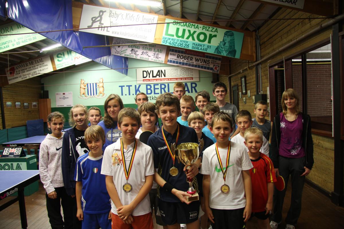 Met 25 deelnemende jeugdspelers waren alle tafels weer goed gevuld op het voorgifttornooi van TTK Dylan Berlaar. De zestien best geplaatste spelers na de poules mochten deelnemen aan de winnaarstabel.