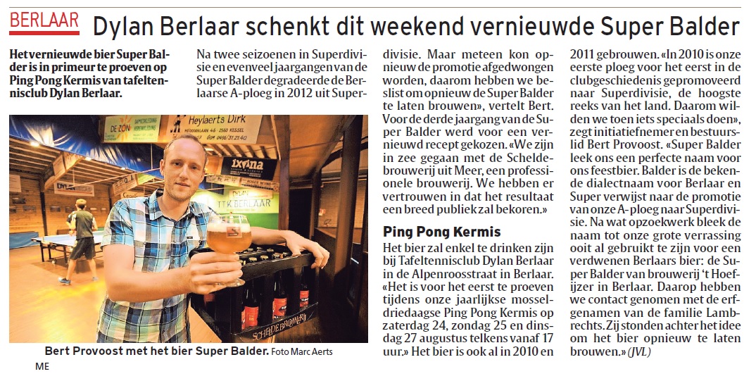 Ook de vernieuwde Super Balder is uitgebreid getest en goed bevonden. Ook in de krant stond een artikel over ons bier en de Ping Pong Kermis.