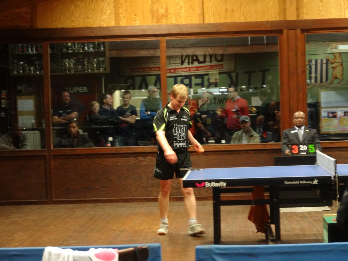 De hoop op een stunt was ver weg, tot Florent Lamoque de eerste punten tegen Mehmedovic had gespeeld. Al snel bevestigde hij zijn supervorm van vorige week tegen wereltopper Monteiro (A2) en stoomde hij met agressief en doeltreffend tafeltennis door tot 2-0. Maar Mehmedovic liet zich niet zomaar naar de slachtbank leiden. De Bosniër staat bekend als een taaie speler, die vorig jaar nog zomaar eventjes Belgiës nummer twee Yannick Vostes klopte en twee seizoenen eerder zelfs nummer één Jean-Michel Saive klopte. Hij probeerde het spelletje van Lamoque te ontregelen, maar in de vijfde set was er geen houden meer aan. Het werd 11-6 in de belle en het eerste thuispunt was binnen.