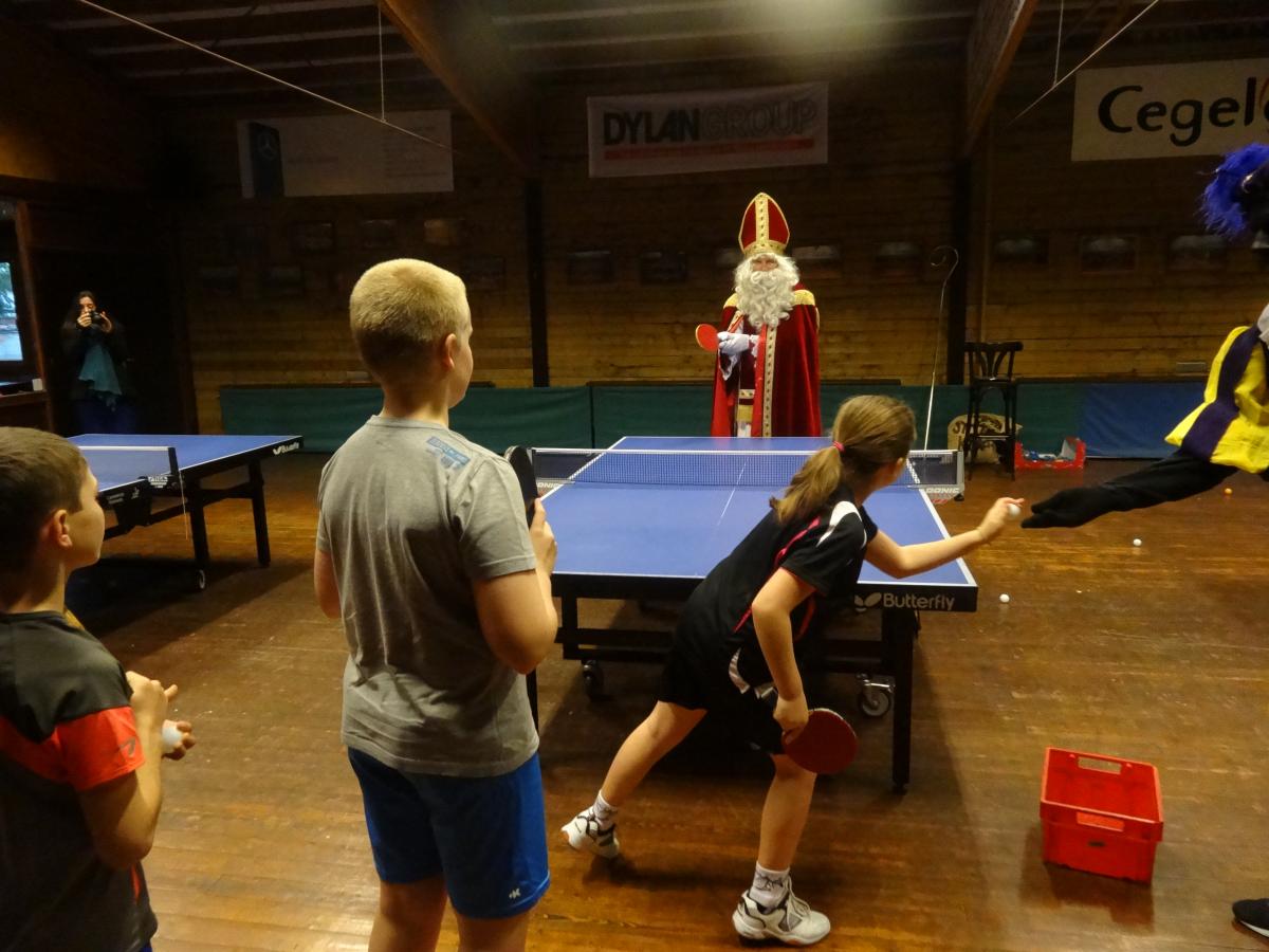 Sinterklaas en zijn Zwarte Pieten zijn woensdag langsgeweest op de jeugdtraining van TTK Dylan Berlaar. Hij bleef de hele namiddag om het Sinterklaastornooi bij te wonen en sloeg zelf ook een balletje.