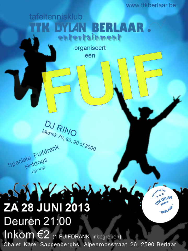 Alle TTK Dylan Berlaar leden zijn hierbij uitgenodigd, en het is ten stelligste aangeraden om ook familie en/of vriend(inn)en mee te brengen. De fuif is enkel open voor TTK Dylan Berlaar leden/vrienden/familie en aanverwante tafeltennisclubs.