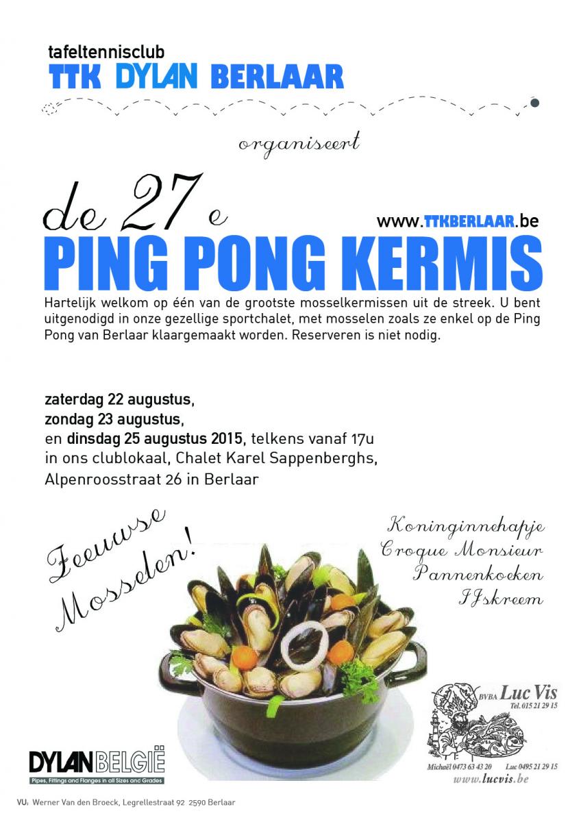 Op zaterdag 22, zondag 23 en dinsdag 25 augustus 2015 is het weer Ping Pong Kermis! Dat wil weer zeggen: ontspannen genieten van mosselen, videe, croque en desserts én op die manier onze club steunen. Wij kijken er al naar uit!