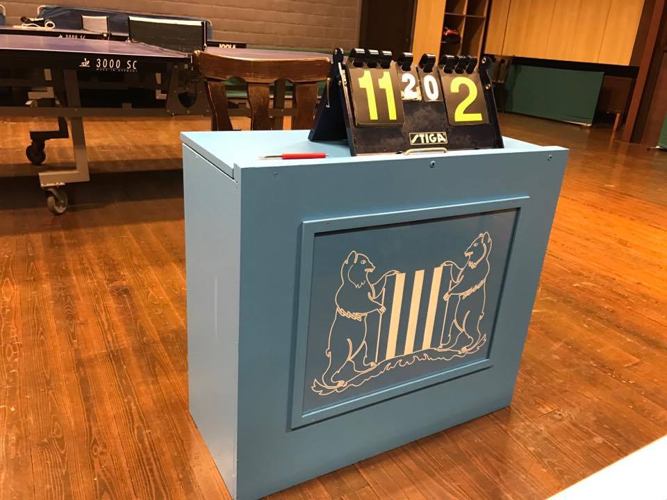 De teltafeltjes voor de scheidsrechters zijn zijn onherkenbaar. Ze waren eerder al geschilderd. Maar nu is de finishing touch gebeurd, met een heel mooi eindresultaat.
