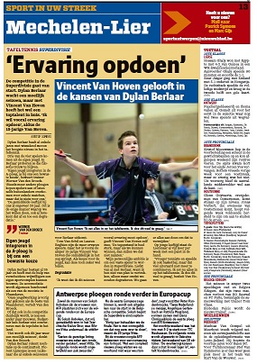 Sep 12 2013 0 By bert In de kranten van donderdag staan erg knappe artikels over het nieuwe seizoen in Superdivisie van Dylan Berlaar. Gazet van Antwerpen en Het Nieuwsblad (beiden editie Mechelen) zoomden vooral in op de rol van Vincent Van Hoven. Forums: Superdivisie
