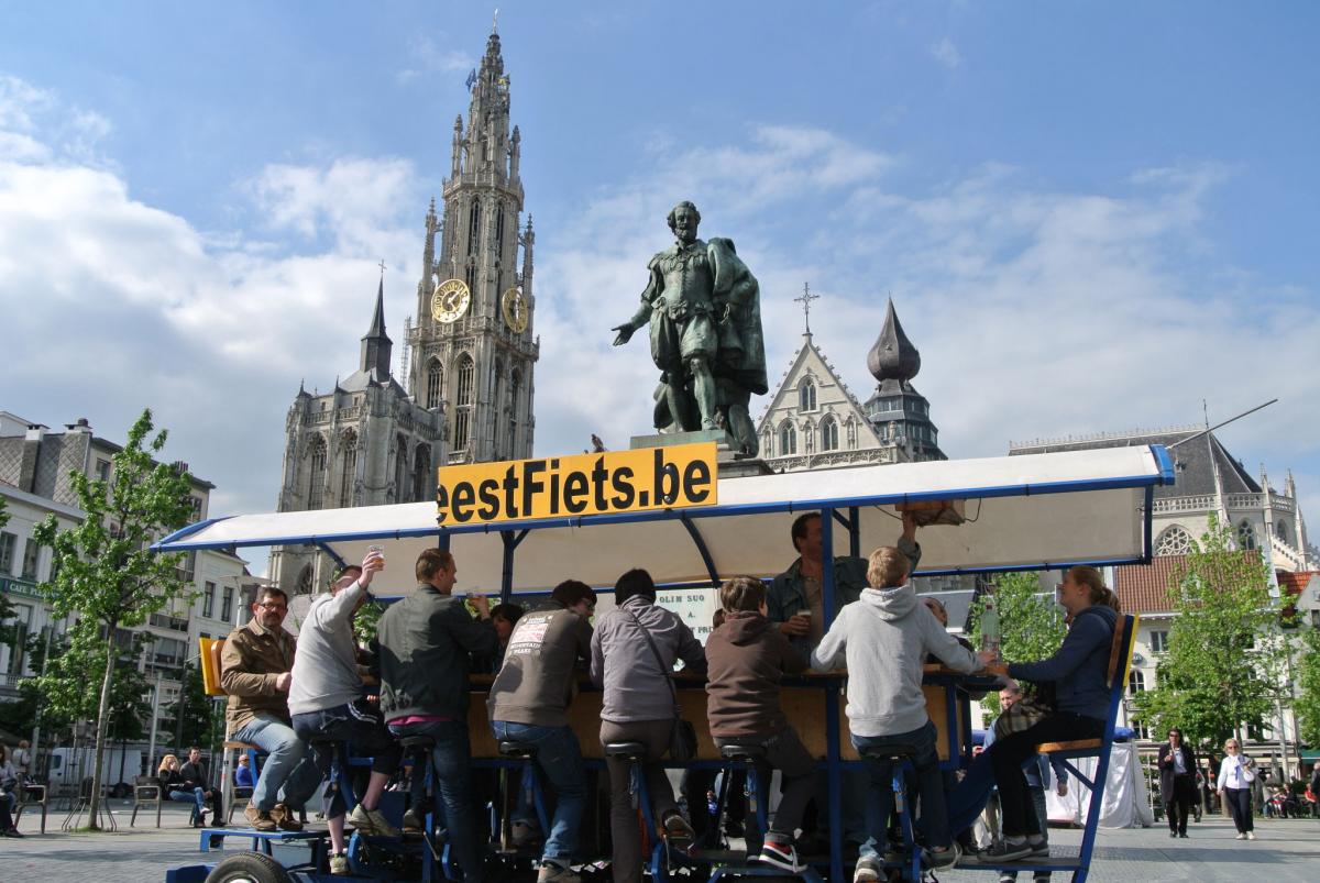 De culturele fietstocht door Antwerpen met de bierfiets was een voltreffer. De deelnemers lieten zich door onze gids door de mooiste plekjes van Antwerpen leiden. Dat leverde enkele mooie plaatjes op.